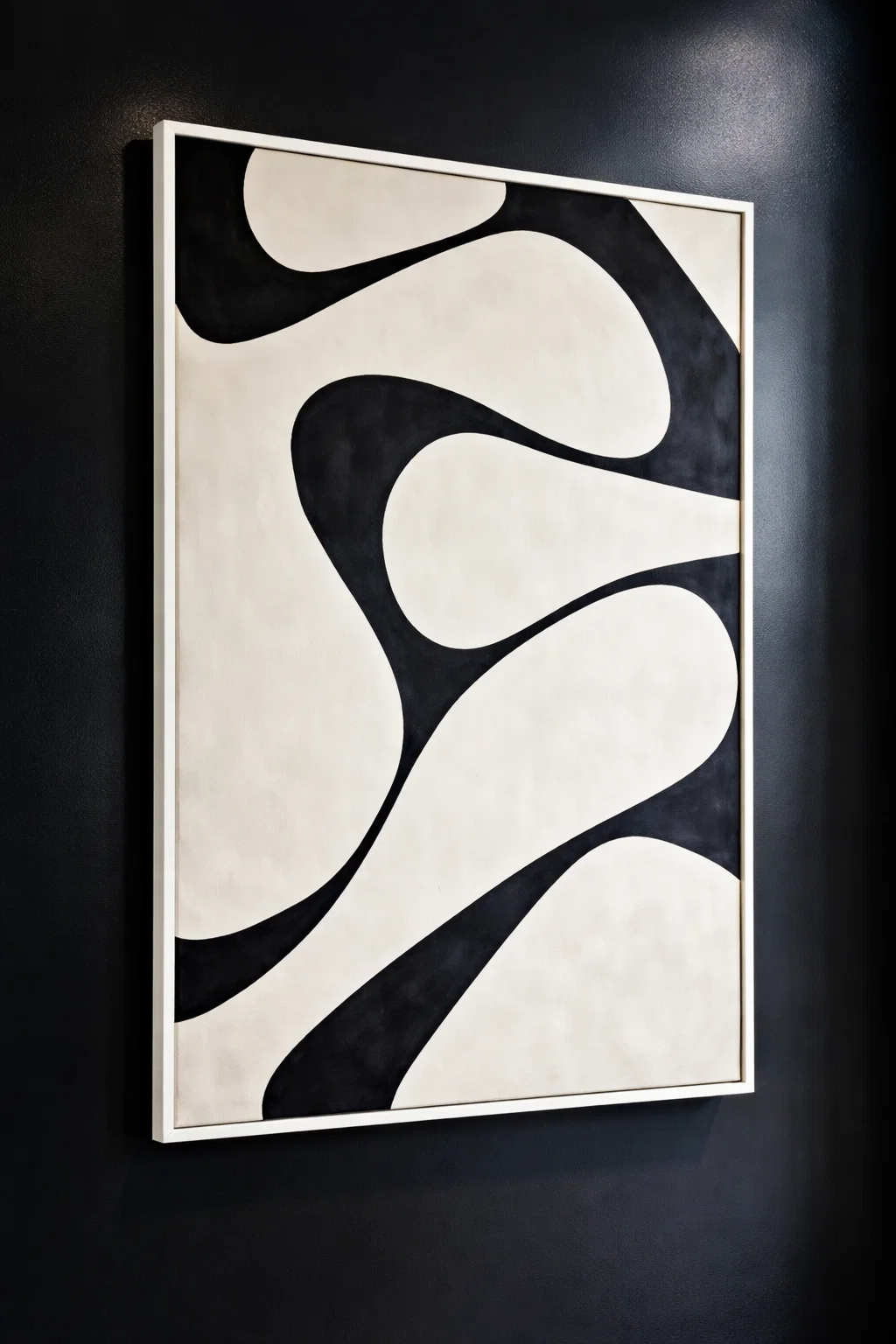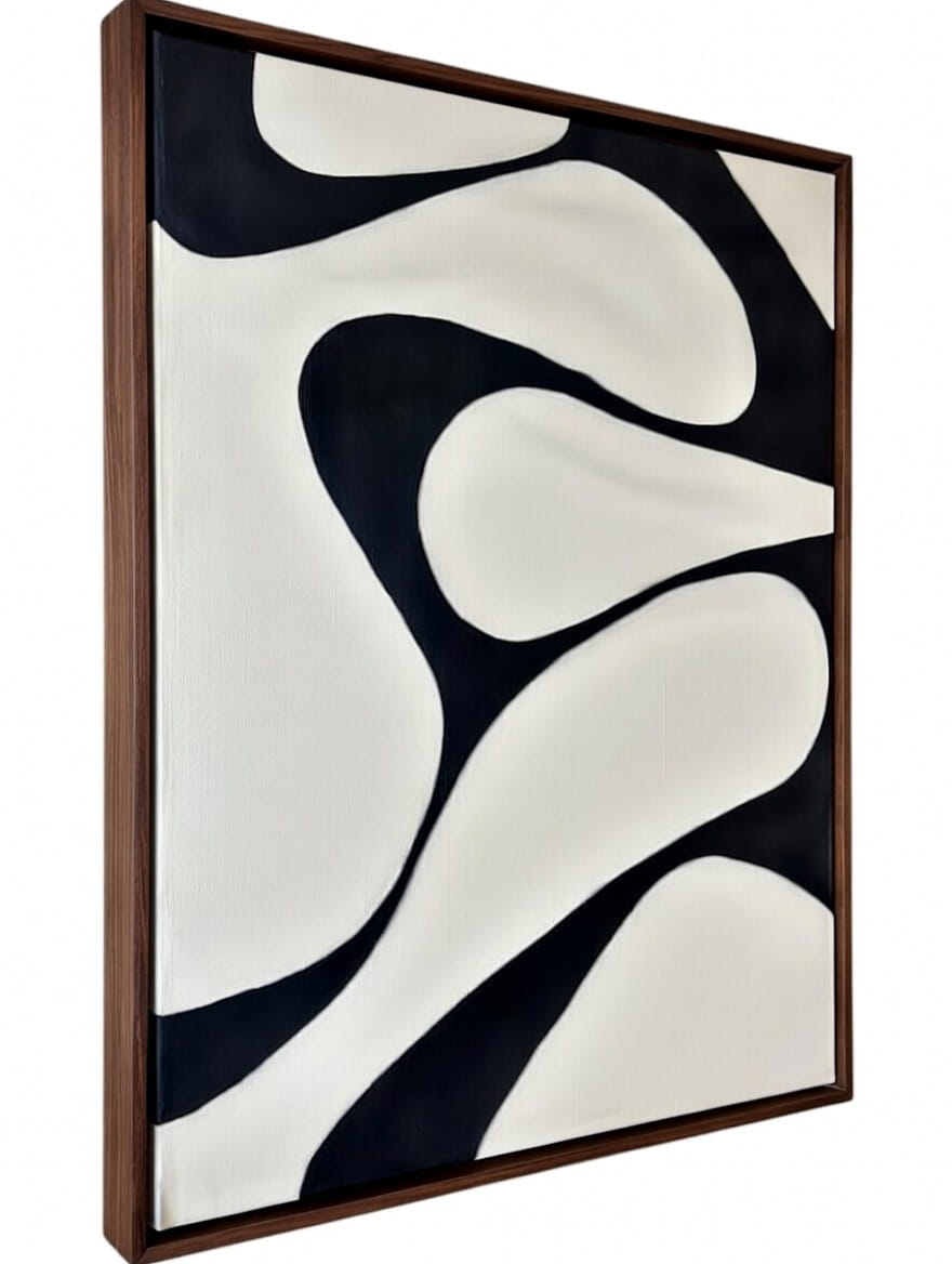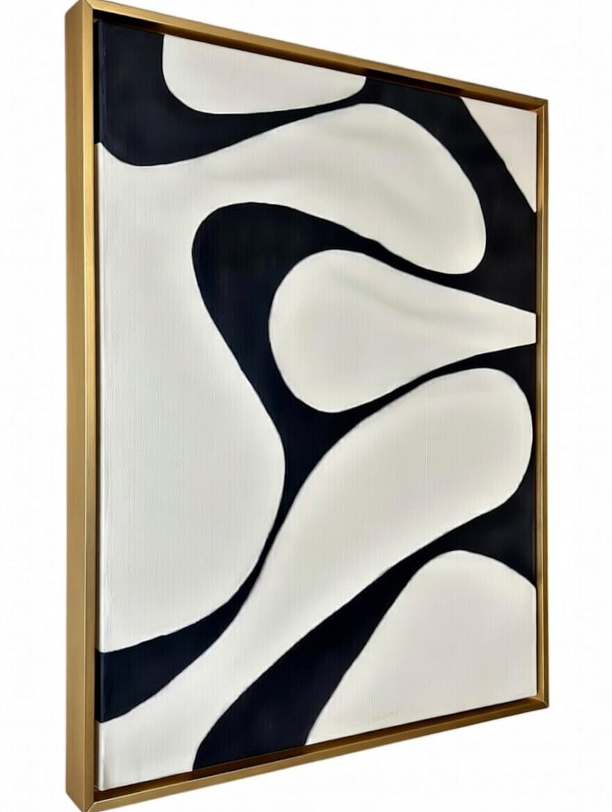 See how beautifully it fits real spaces—like above a sofa in a cozy living room or as a focal point in a bedroom. This black and white abstract canvas painting is more than just art; it’s a simple way to bring modern charm and emotion into your home.